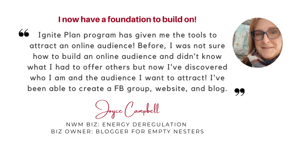 An incredibly supportive environment of students who are matriculating through The Ignite Plan right alongside you or have already successfully completed the program. Each week you’ll be encouraged to celebrate your wins and share your expertise with people who are on the same journey as you. This type of community support will help you stay inspired, growing, and moving forward in both your life and your business!