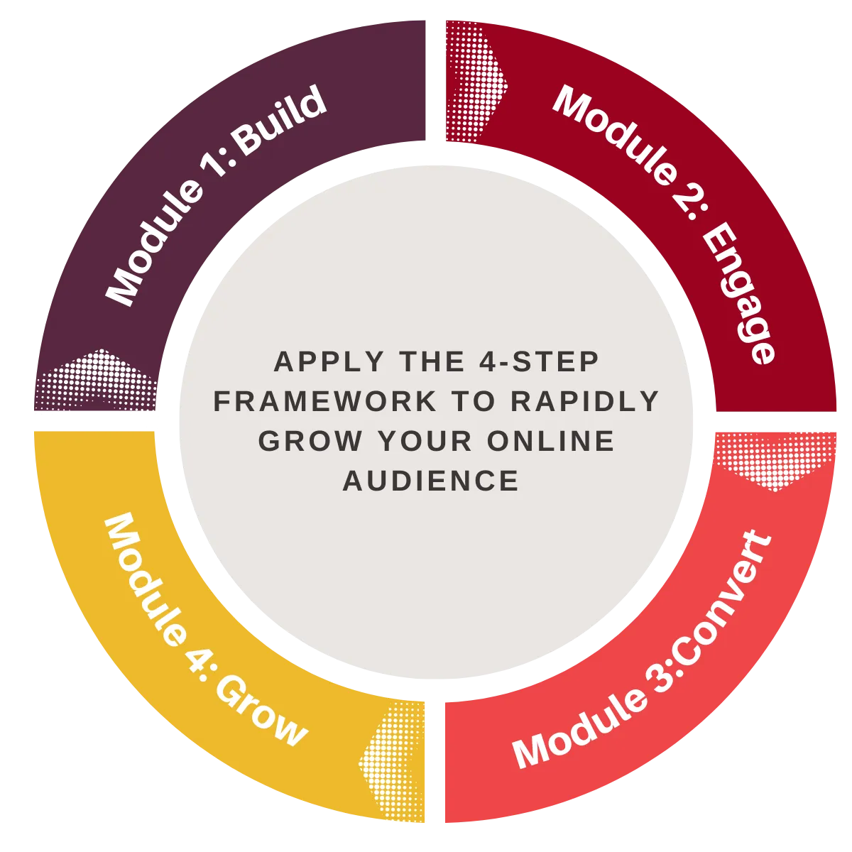 Using the 4-Step Plan, you’ll get step-by-step action plans and LIVE COACHING to start attracting, connecting, converting, and growing traffic that is chocked full of people who want to hear all about what you have to offer.